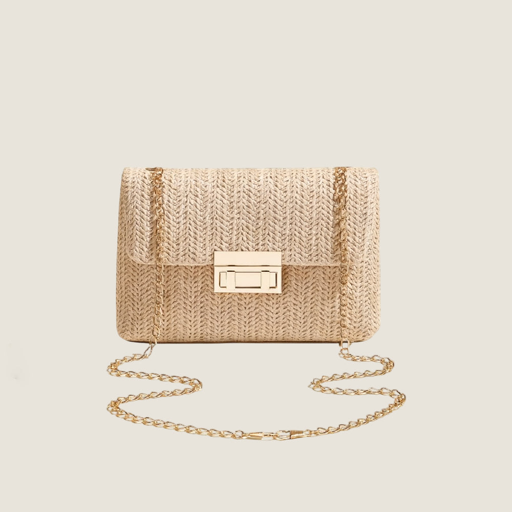 Doğal hasır dokusuyla yaz ruhunu yansıtan Solera, altın zincir detayıyla şık bir kontrast oluşturur. Omuzda hafif ve zarif bir şekilde dururken, küçük boyutuyla kombinlere minimal bir şıklık katar. Hem günlük hem özel davetlerde modern ve sofistike bir tamamlayıcıdır.